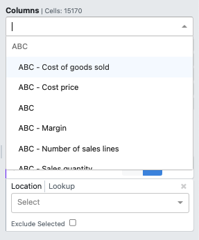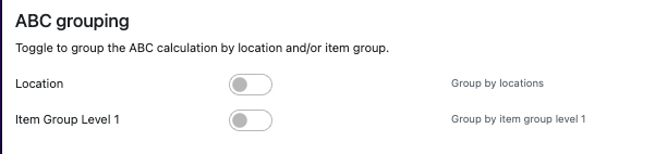 Here you have the option of calculating ABC across all SKU‘s ( if nothing is chosen) Or select one or two of the following: