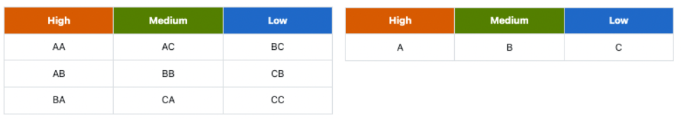 Either a two dimension ABC analysis will classify 9 results into three importance groups. Or a single ABC will simply be given an importance level for each.
